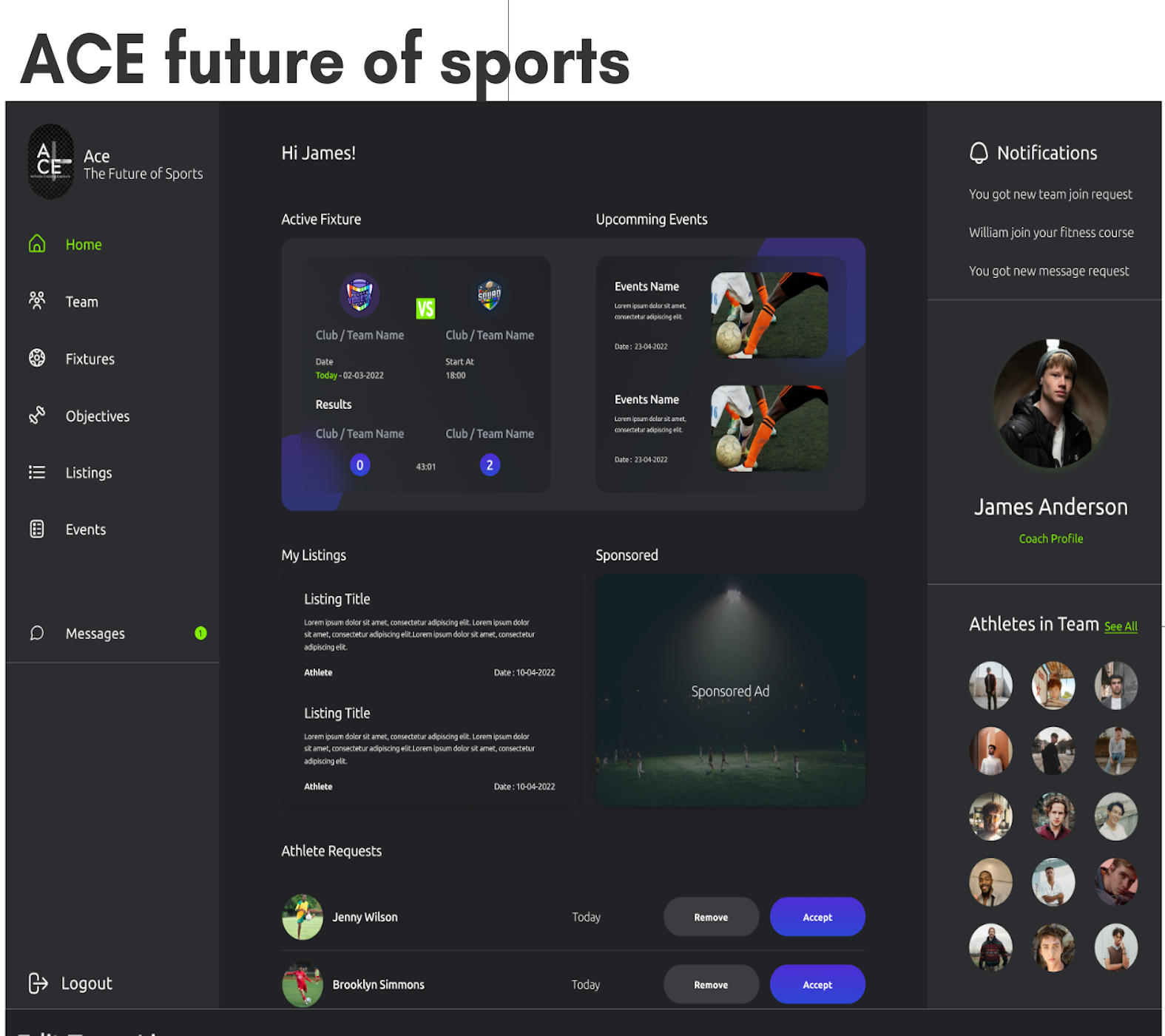 Sports-focused visual identity aligned with football branding